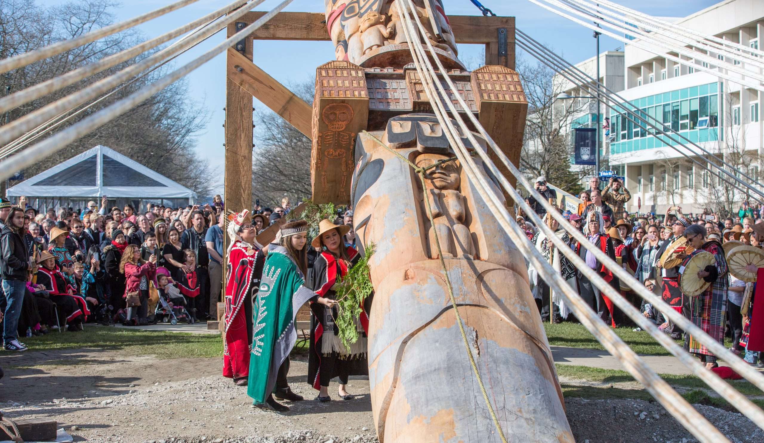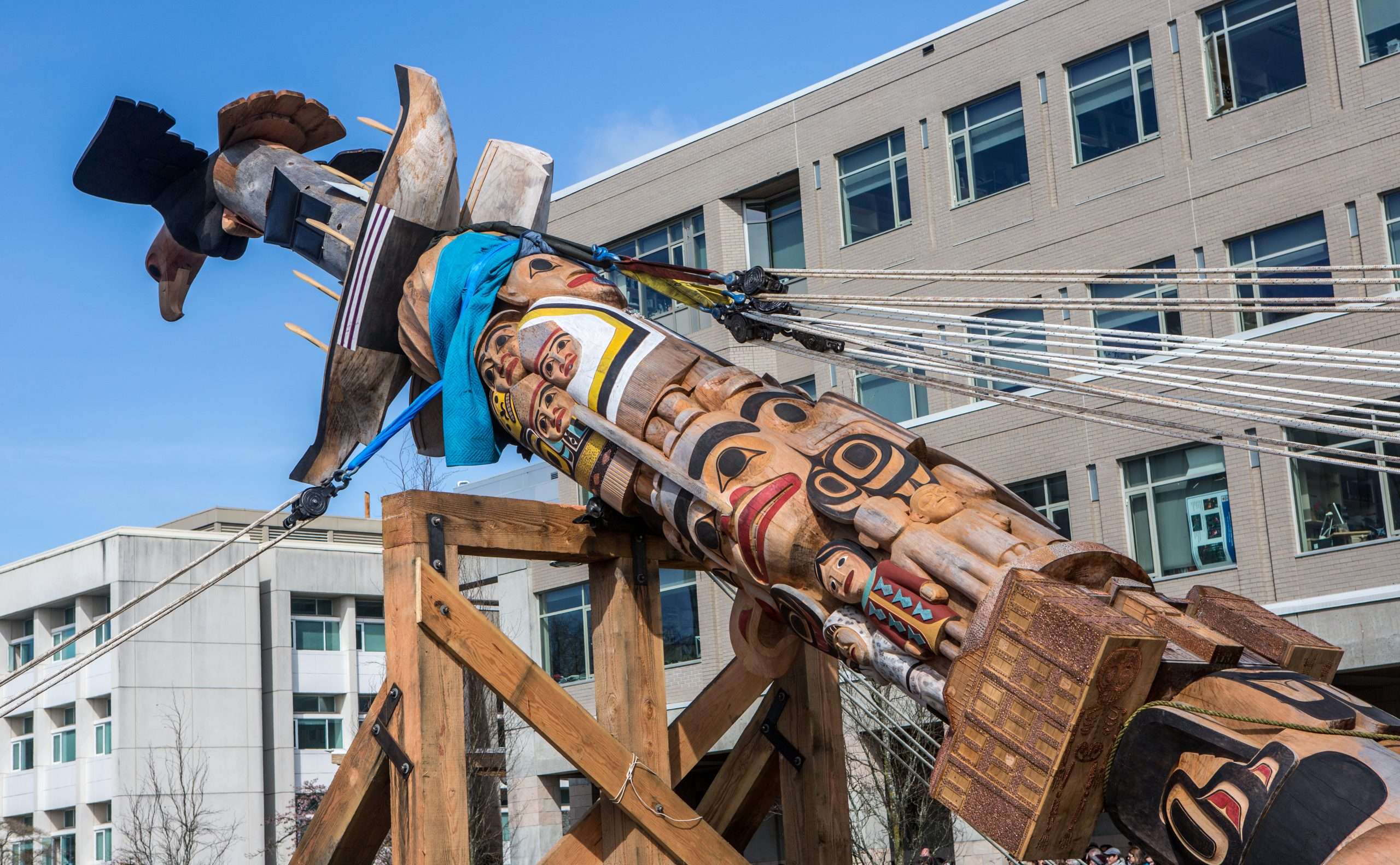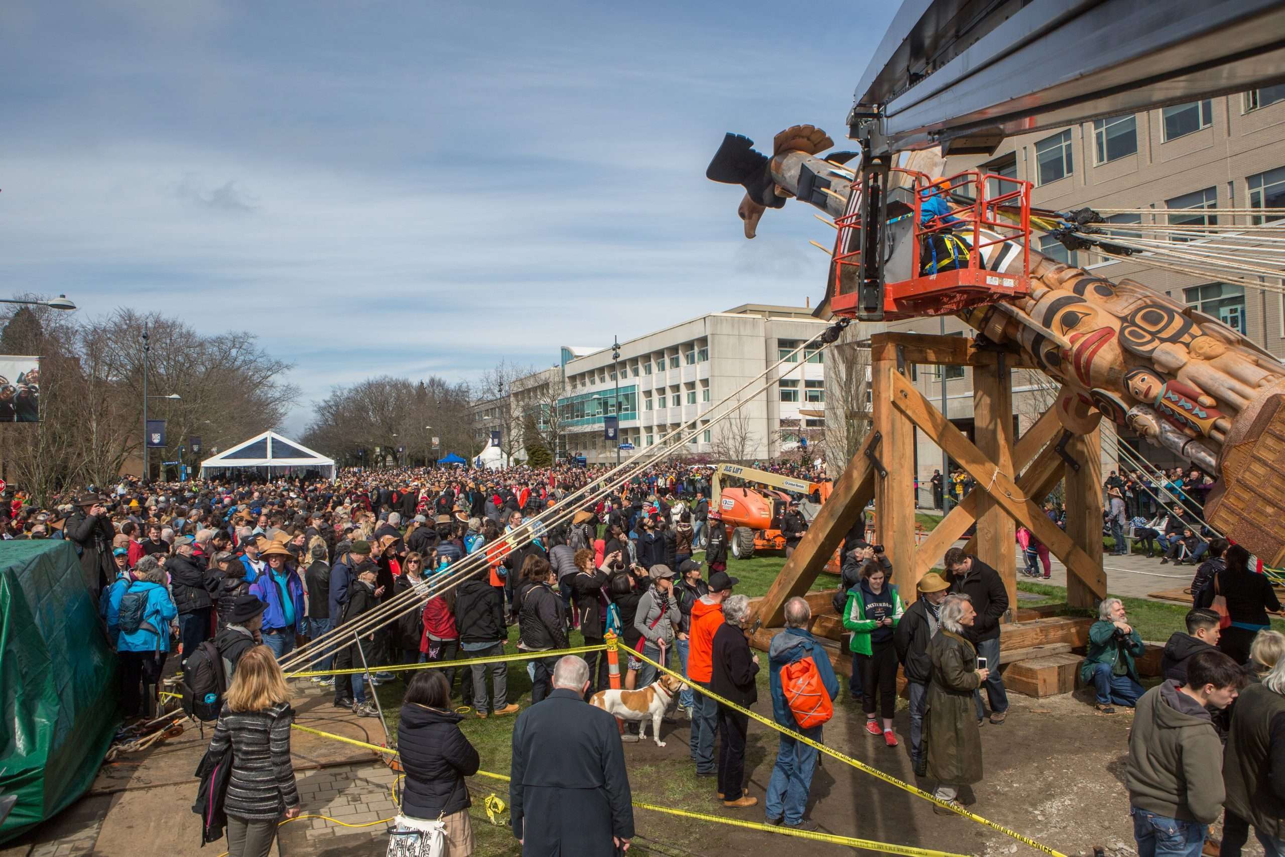 In a momentous occasion celebrating reconciliation and cultural heritage, Pro-Tech Industrial Movers partnered with BEL Contracting to raise a Reconciliation Pole at the University of British Columbia (UBC). This totem pole was an 800-year-old red cedar masterpiece, beautifully carved by Haida artist James Hart. Commissioned by the Audain Foundation and UBC, this symbolic art piece aimed to represent the dark history of residential schools and the path toward reconciliation between Indigenous and non-Indigenous communities in Canada.