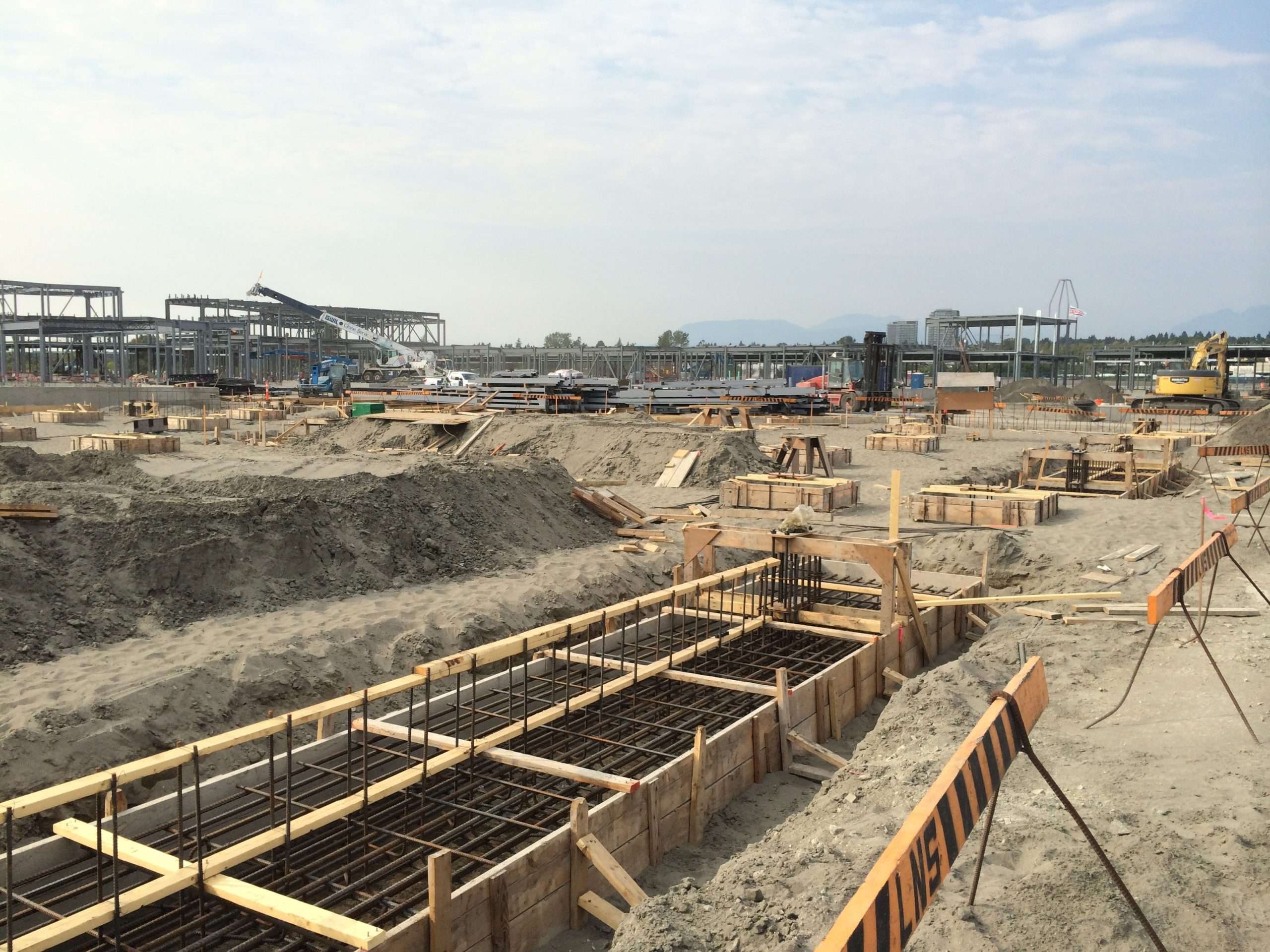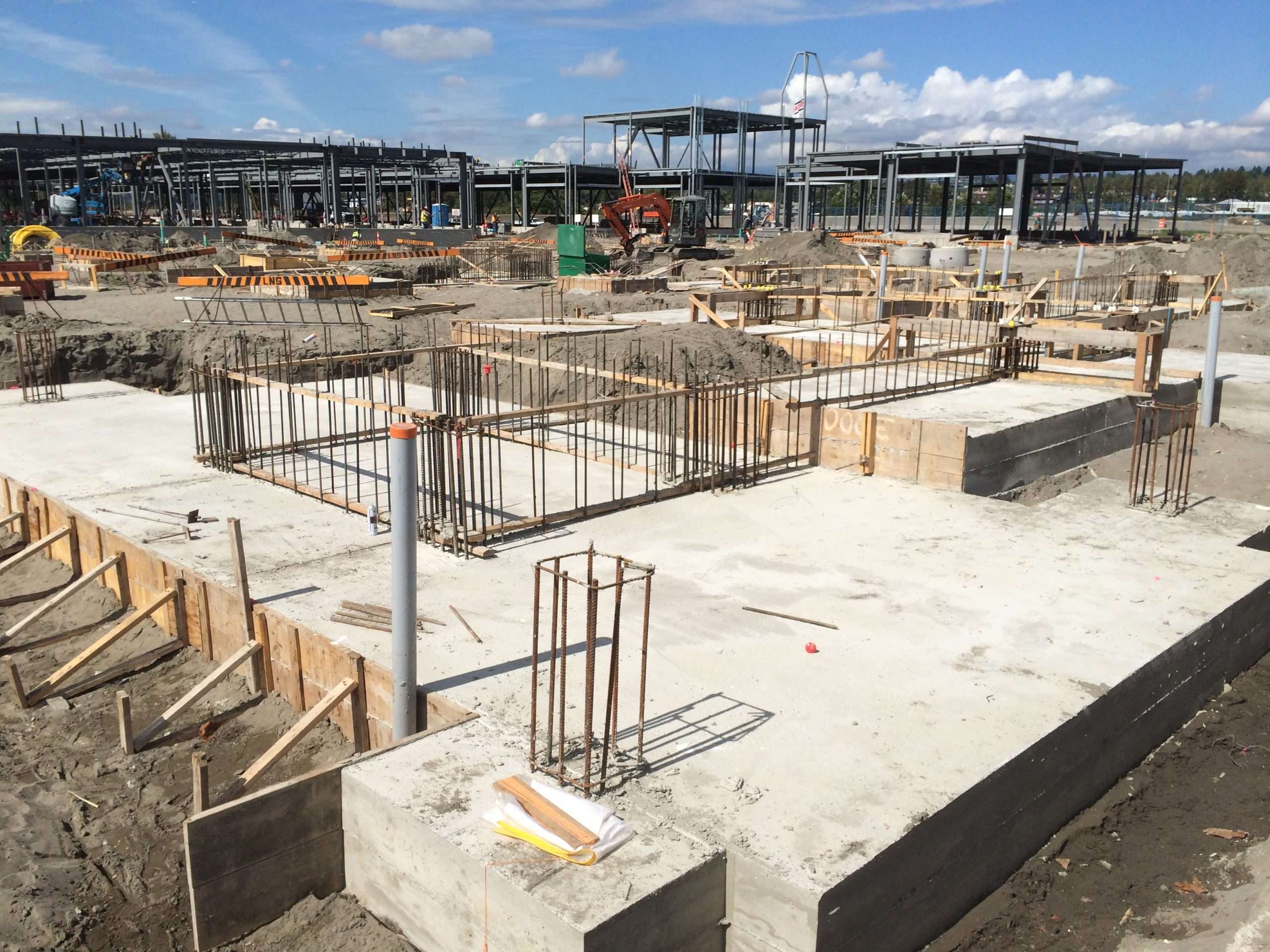 Strabag Inc. awarded LNS the contract for YVR’s outlet mall concrete foundations. The contract was to supply, form and pump in place over 1,700 cubic meters of concrete walls, columns, and footings, over 23,000 square meters of slab on grade, and 6 elevator pits. With the skill-set and experience LNS provided, Strabag Inc. extended the contract to pour an additional floor slab on 2nd floor elevations.
