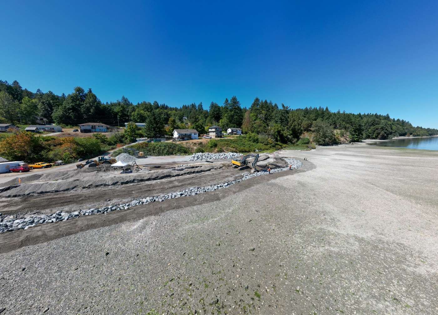 Working closely with the Nation’s archaeological consultants, Copcan sifted excavated material to preserve artifacts and cultural heritage. The site’s proximity to the water posed unique challenges, including the need for precise timing around tides and regulatory windows. The team leveraged their experience, with GPS-equipped excavators and collaborative planning, to overcome these hurdles. Copcan also provided additional rock from their own quarry, ensuring continuity when the Nation’s supply ran low.