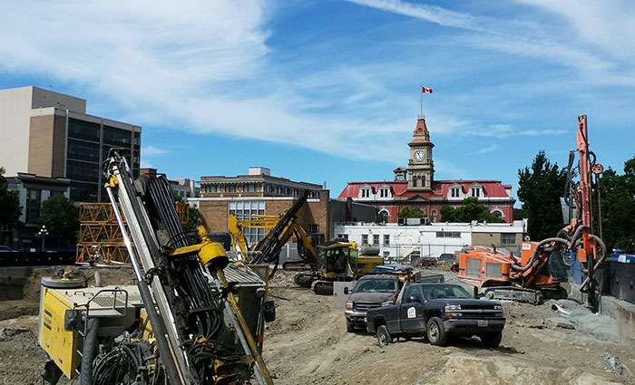 Campbell Construction contracted Western Grater to install an anchor tendon shotcrete shoring system as well as drilling and blasting rock at 1515 Douglas St. in Downtown Victoria, BC. This high-profile residential and commercial building project is owned by Jawl Enterprises and located across the street from historic Victoria City Hall.