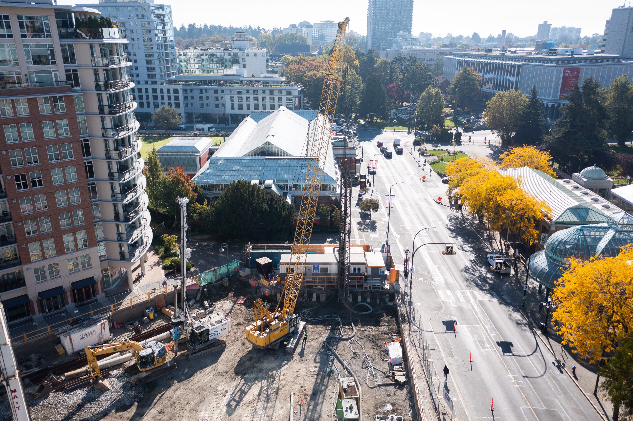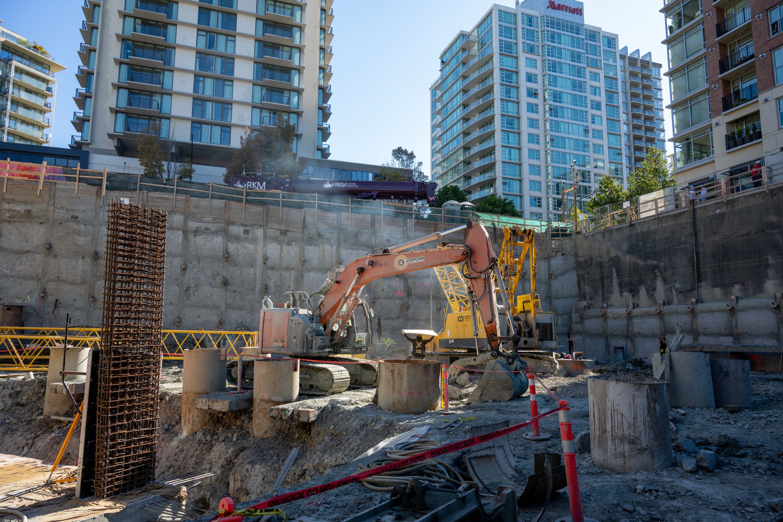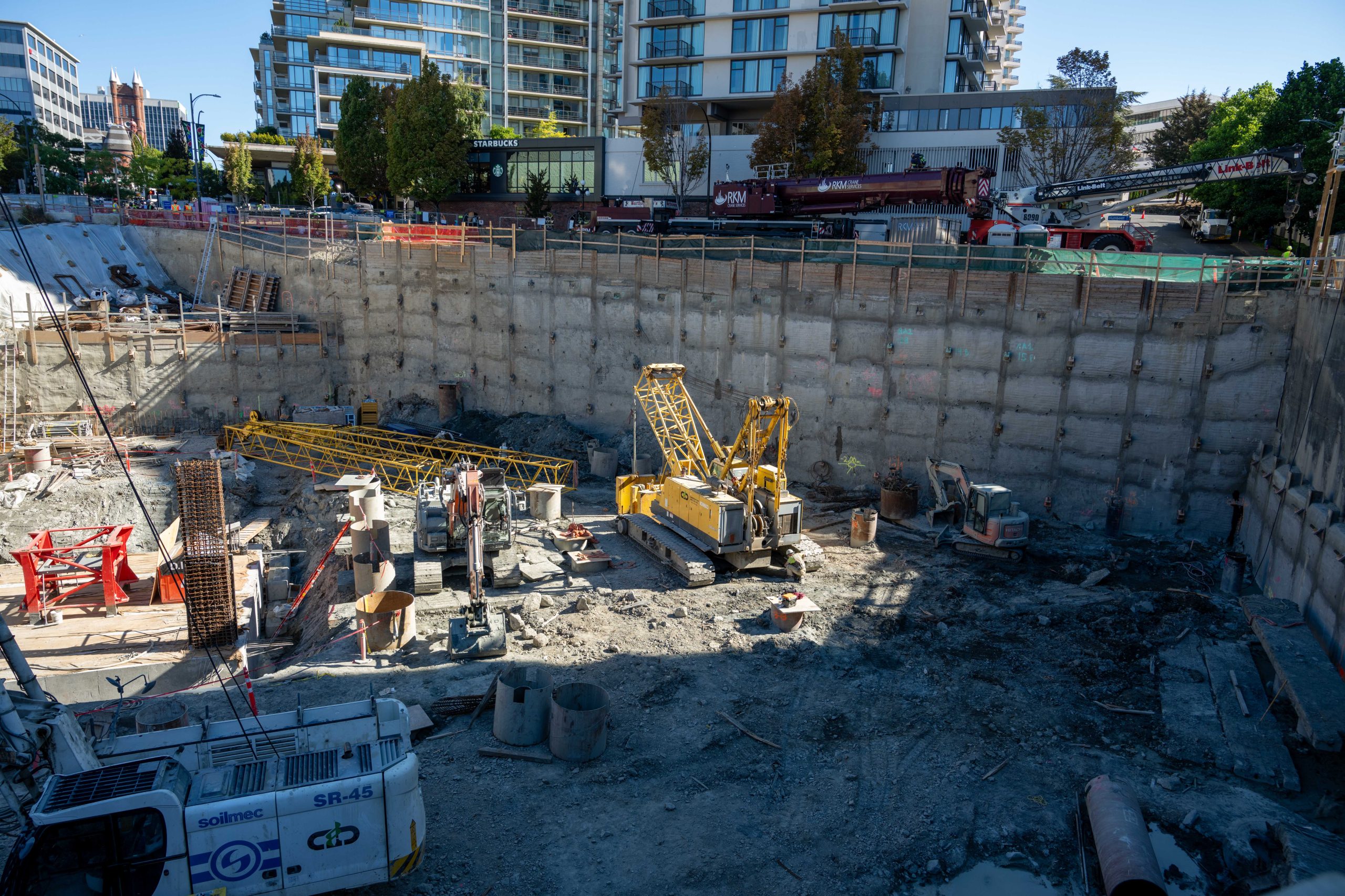The 767 Douglas Street project in downtown Victoria was a complex undertaking for Copcan. The project required the demolition and removal of an underground parkade and the historic Empress Hotel Boiler rooms, involving the careful handling of asbestos and heavy metals. Given the project’s location right on the property line and its proximity to the ocean, several specialized shoring techniques were employed to ensure stability and safety.