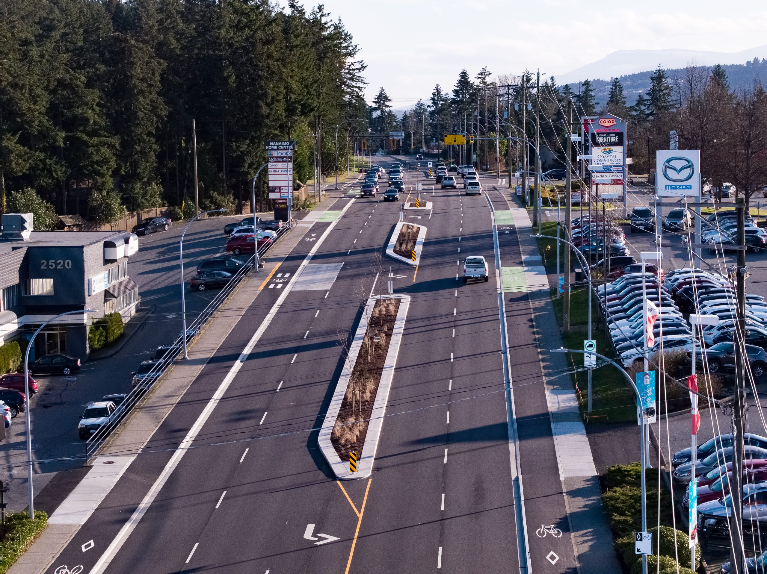 This project included water distribution mains and services, storm sewer mains, catch basins, concrete curb, gutter, sidewalk, traffic islands, road works and paving. This project was located on a very busy arterial road within the City of Nanaimo. All works were completed on night shift to minimize impact to the surrounding area. Traffic management was a significant challenge for this project but was overcome through detailed traffic management plans, thorough schedule planning and cooperation with the surrounding businesses and homeowners.
