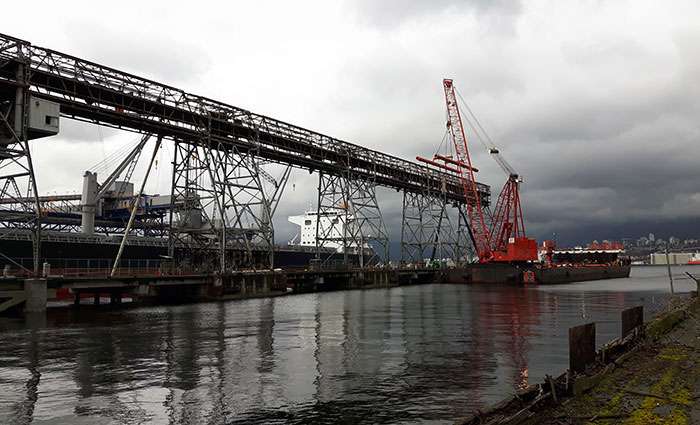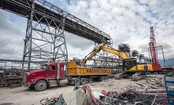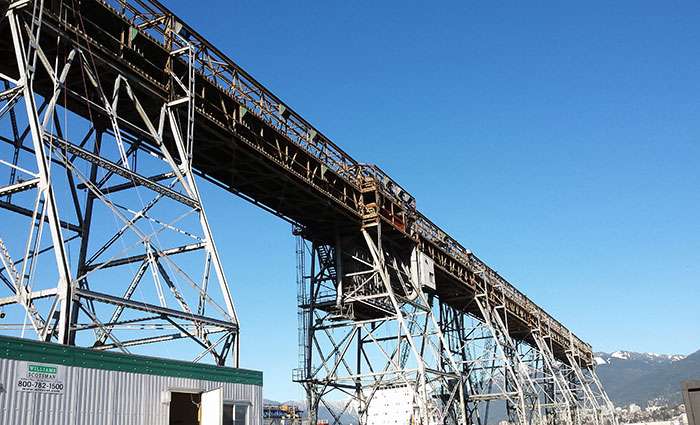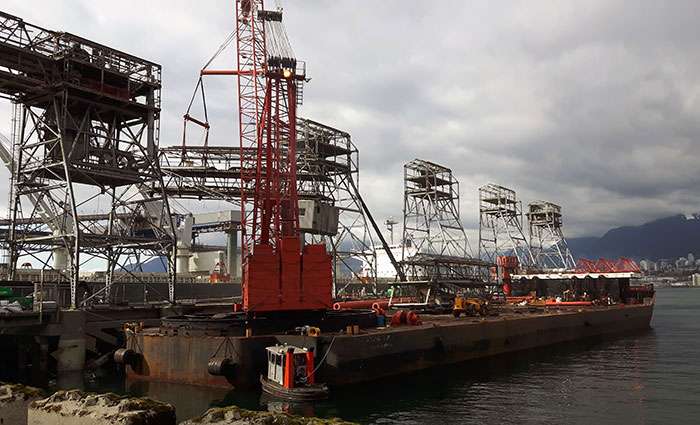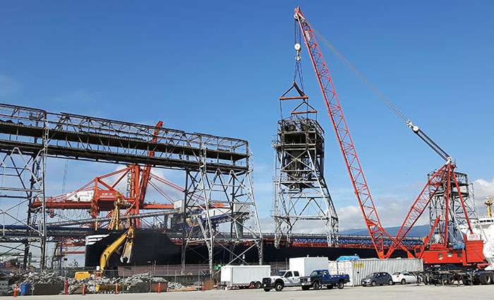 Pacific Demolition Ltd. completed the demolition of a decommissioned conveyor gallery and boxcar unloader in Vancouver, BC.