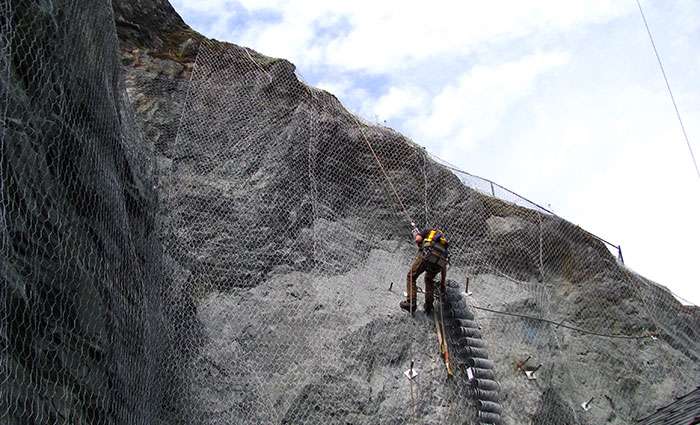 With minimal clearance between the rock face and house, Western Grater carefully installed the required anchors and mesh. Our innovative team approach, combined with our local experience, depth of resources and equipment allowed us to complete this project in a safe and cost effective manner.