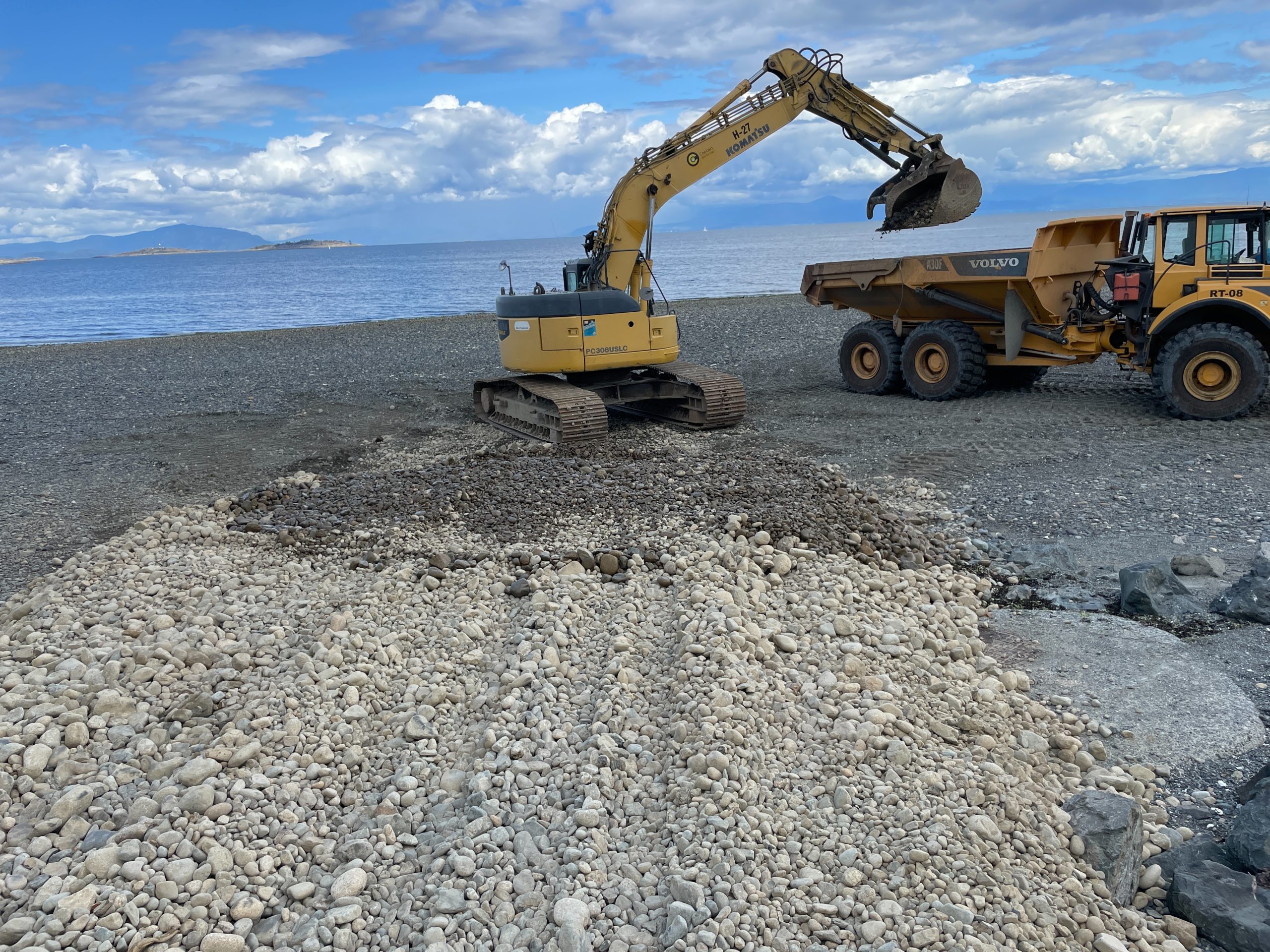 This project included the supply and placement of cobble fill, armour rock and filter rock on the beach in Nanoose to provide erosion protection and fill cover over the existing interceptor sewer running underneath the beach.