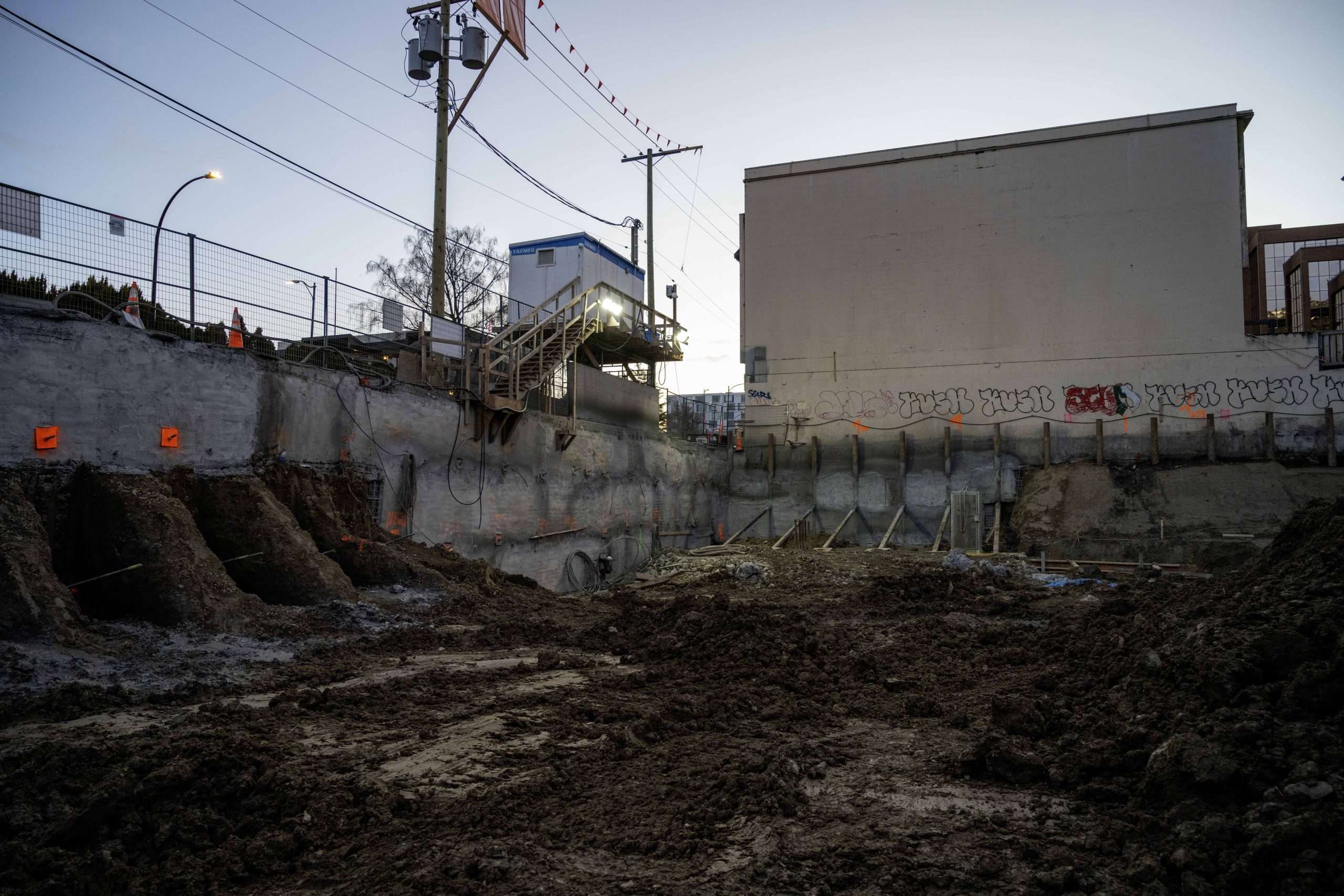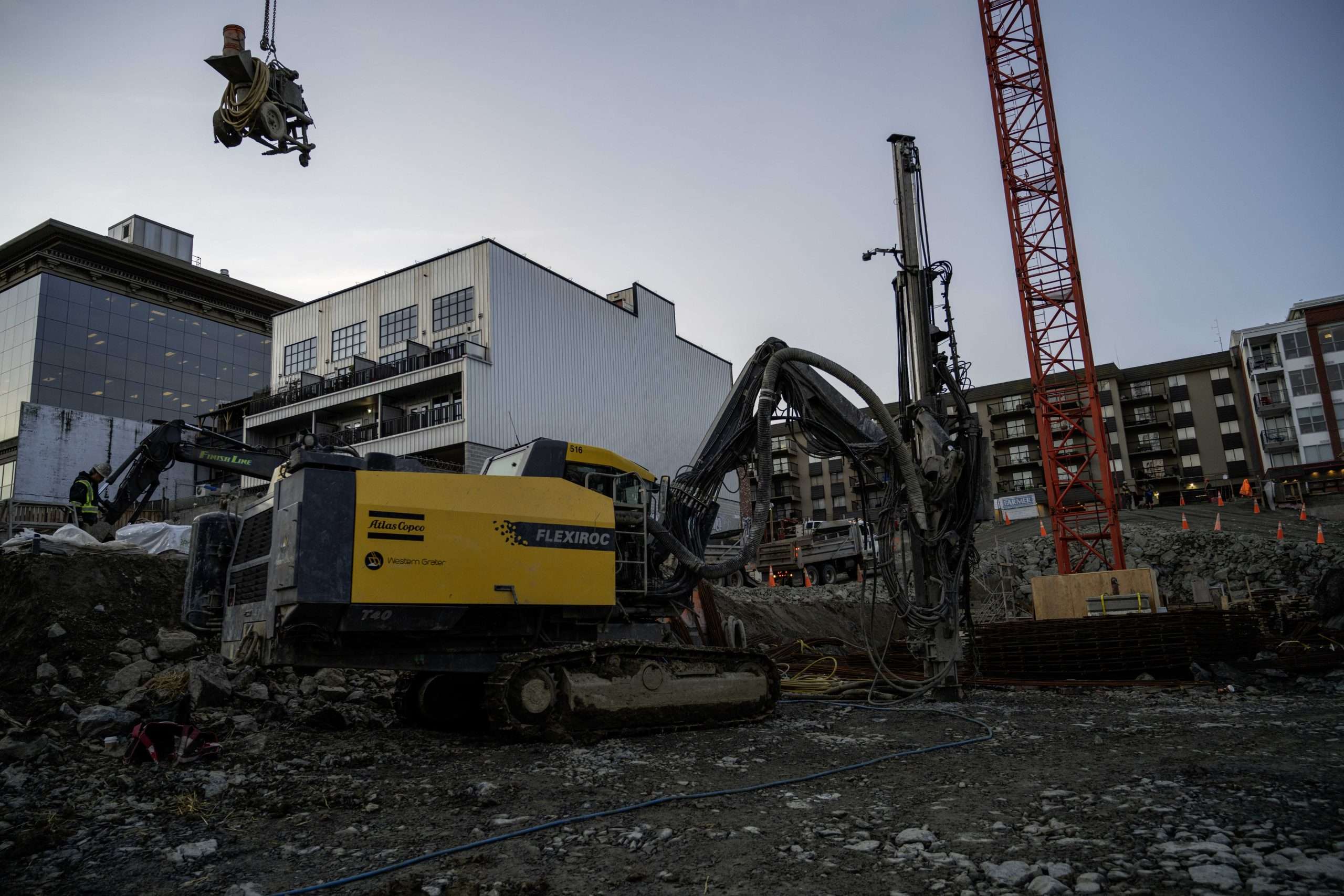 As with most blasting operations in urban settings, much care must be taken to ensure the safety of all other workers and the general public, as well as the presence of older structures from the early 20th century that the city of Victoria is famous for. On the Spencer Block project there is an adjacent brick building built in 1908 by Sam Kee Laundry, the utmost care was taken to ensure no damage was sustained and the impact to the residents was kept to a minimum. Engineers are also involved in the monitoring of neighbouring structures to ensure all excavation perimeters remain stable and safe.