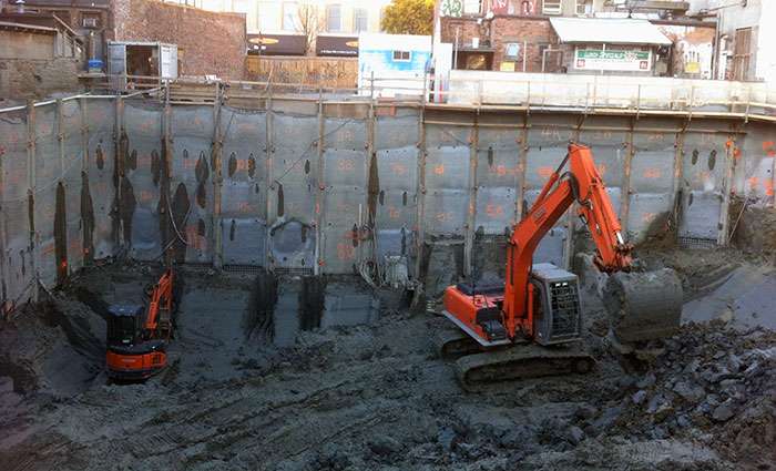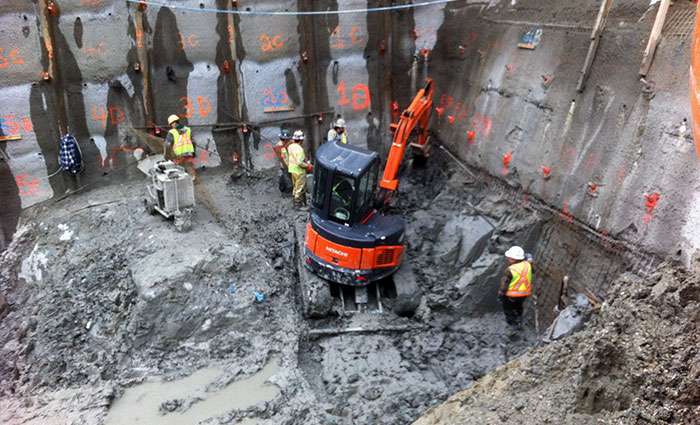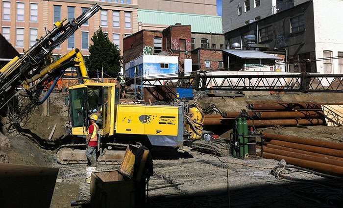 Western Grater was responsible for both shoring and blasting, which involved mitigating logistical conflicts, cutting costs and streamlining project execution. Our versatible fleet of drills, capable of drilling for both blasting and anchoring, provided great value to this project. Construction of the Sovereign Building was completed in late 2013.