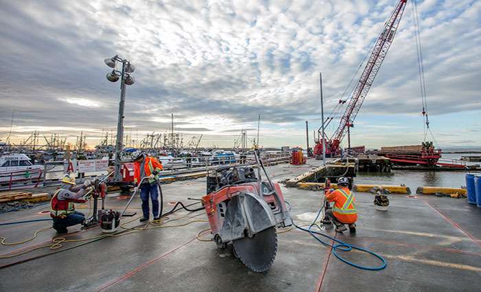 Pacific Blasting & Demolition Ltd was contracted to perform concrete cutting and coring to facilitate the safe and environmentally responsible demolition of a decommissioned wharf in Steveston, BC.