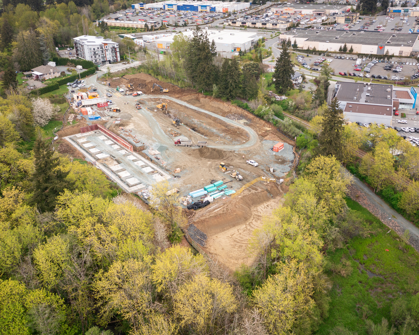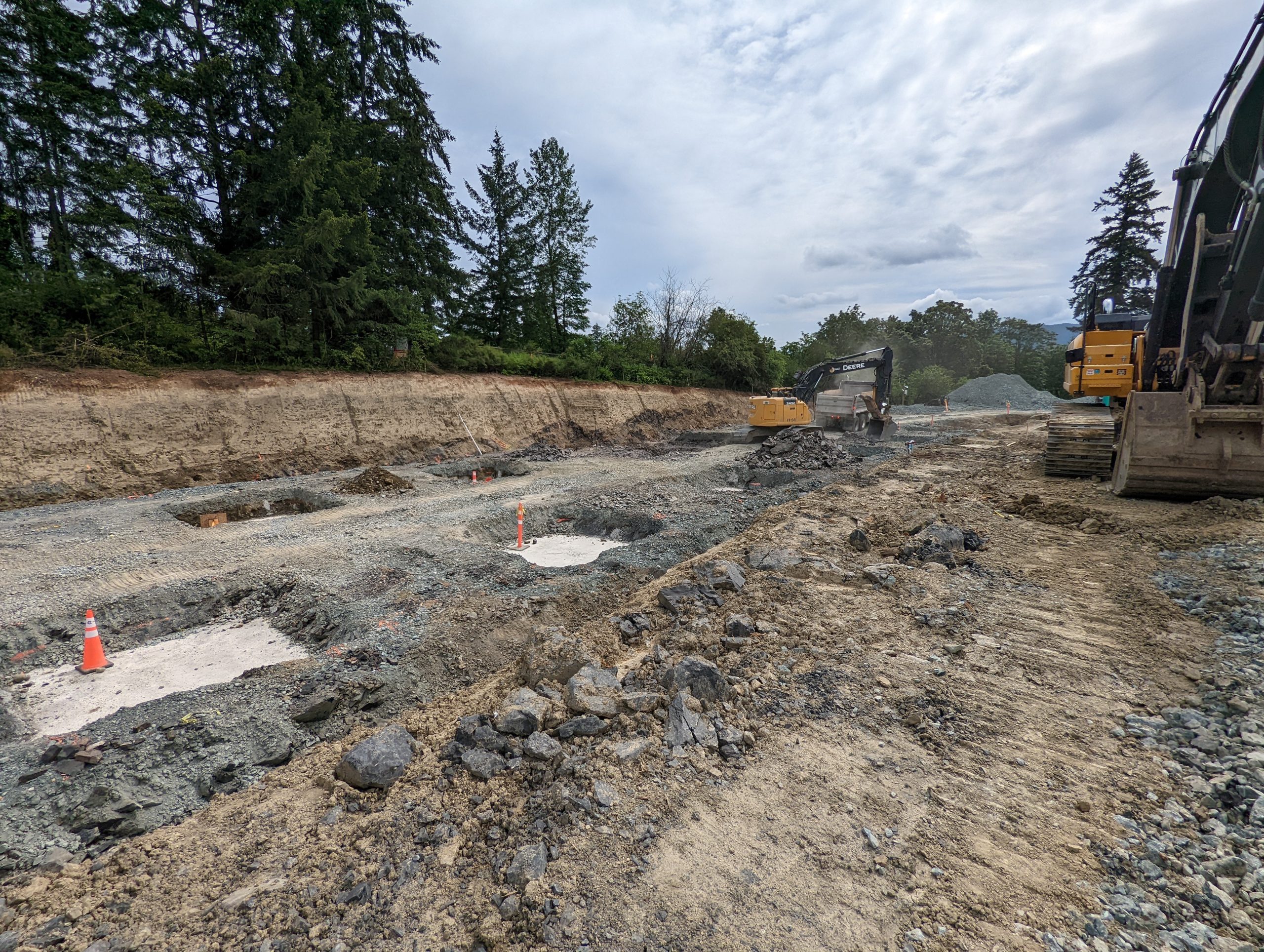 The schedule was a huge push on this project. Copcan manned the site with 15-20 workers at times with 3-5 excavators moving fill and placing gravels. Space was also limited on such a busy site with over a dozen sub trades working concurrently. Copcan worked closely with the superintendent from Seymour Pacific to ensure we stayed ahead of their other trades and crews.